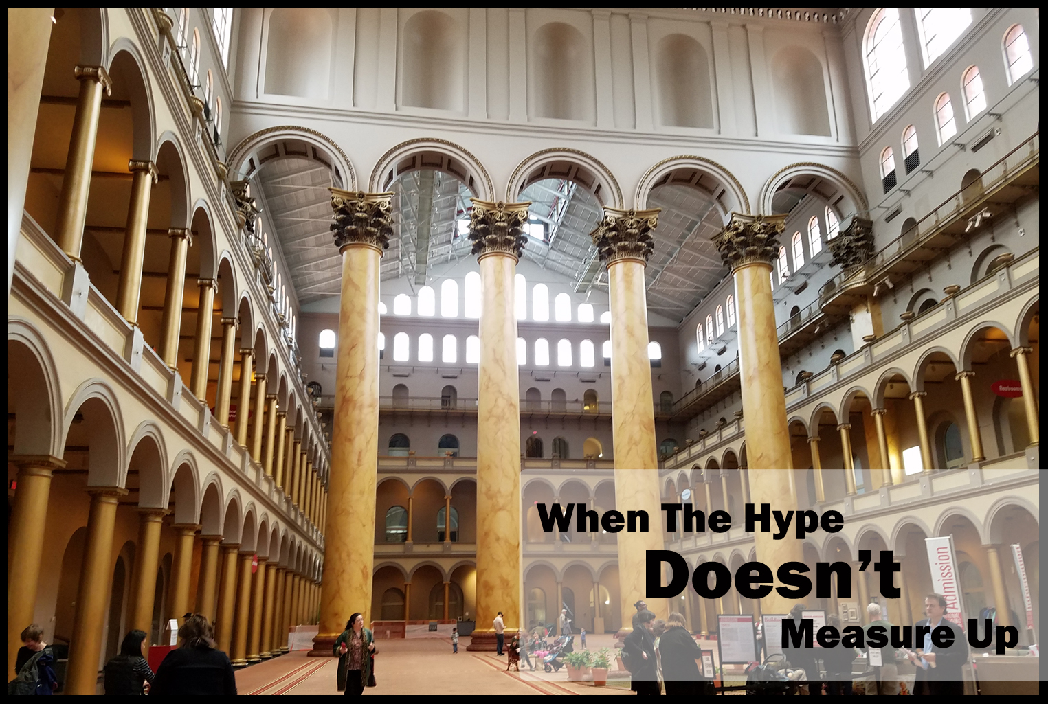 This image is a quick shot I took of the interior of the National Building Museum. It’s huge. It has amazing exhibits. And it’s not very kid friendly at all.