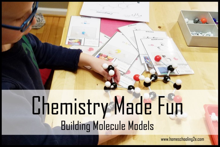 Once we start doing more basic science experiments (library book, whoo hoo! here we come science!) I’ll use those same molecule models to show him how hydrogen peroxide breaks down into water and oxygen in the Elephant’s Toothpaste experiment. Looking at it that way makes a lot more sense, and it sets a solid base for understanding science.