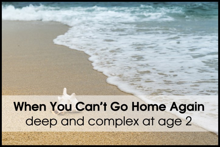 He was 2 then. Only a few months ago last summer, and now he’s 3. Three years old. Too young to grieve for a time and place. He still says this to me, especially when we’re having a bad day and he’s upset. He wants to go home. So do I, son, so do I.
